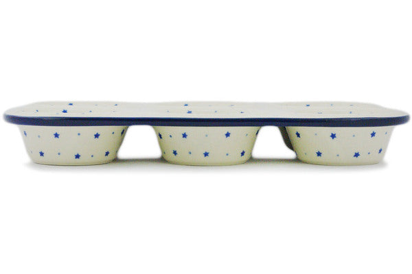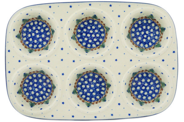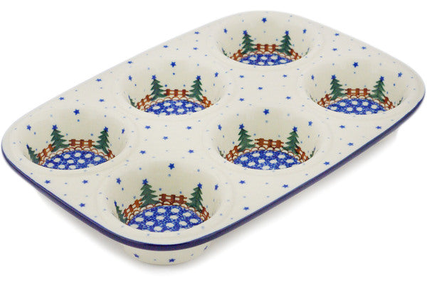 This Pocono Pines 11" Muffin Pan was handmade and hand decorated in Boleslawiec, Poland by skilled artisans according to old traditional methods. This Polish stoneware is microwave, dishwasher, freezer, and oven safe up to 480°F. It does not contain lead or cadmium. It is part of the Pocono Pines Collection.