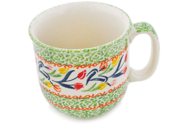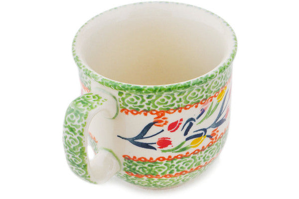 This Tulip Ring 10 oz Mug was handmade and hand decorated in Boleslawiec, Poland by skilled artisans according to old traditional methods. This Polish stoneware is microwave, dishwasher, freezer, and oven safe up to 480°F. It does not contain lead or cadmium. It is part of the Tulip Ring Collection.