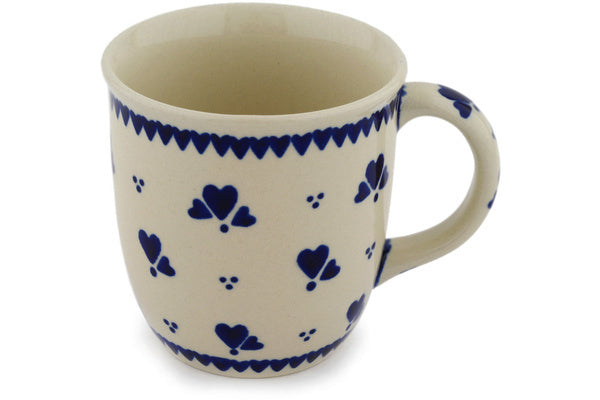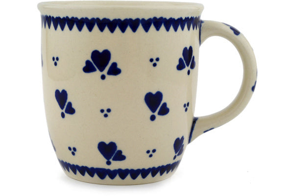 This Blue Heart Trio 12 oz Mug was handmade and hand decorated in Boleslawiec, Poland by skilled artisans according to old traditional methods. This Polish stoneware is microwave, dishwasher, freezer, and oven safe up to 480°F. It does not contain lead or cadmium. It is part of the Blue Heart Trio Collection.