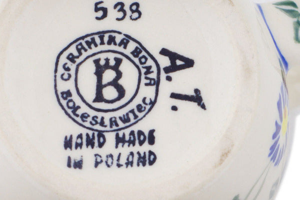 This Blue Thistle Beauty 12 oz Mug was handmade and hand decorated in Boleslawiec, Poland by skilled artisans according to old traditional methods. This Polish stoneware is microwave, dishwasher, freezer, and oven safe up to 480°F. It does not contain lead or cadmium. It is part of the Blue Thistle Beauty Collection.