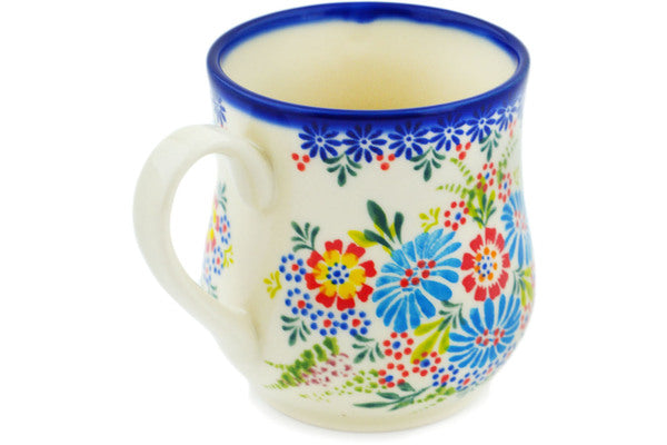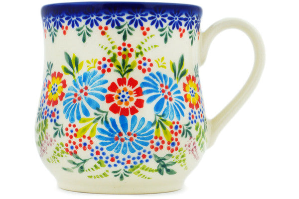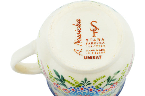 This Bouquet In Bloom 12 oz Mug was handmade and hand decorated in Boleslawiec, Poland by skilled artisans according to old traditional methods. This is a Polish pottery Signature Unikat, which means that it has been hand painted with both sponges and brushes and it is signed by the artist who painted it. Unikat pieces are the most intricate works of art. Larger Unikat items take hours of very careful work to finish. This Polish stoneware is microwave, dishwasher, freezer, and oven safe up to 480°F. It does not contain lead or cadmium. It is part of the Bouquet In Bloom Collection.