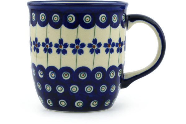This Flowering Peacock 12 oz Mug was handmade and hand decorated in Boleslawiec, Poland by skilled artisans according to old traditional methods. This Polish stoneware is microwave, dishwasher, freezer, and oven safe up to 480°F. It does not contain lead or cadmium. It is part of the Flowering Peacock Collection.