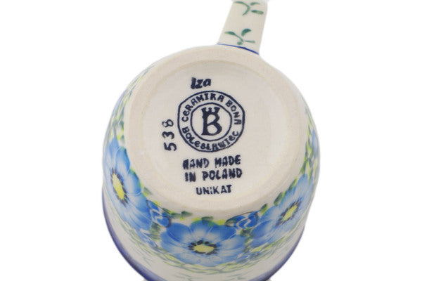 This Gorgeous Morning Glory 12 oz Mug was handmade and hand decorated in Boleslawiec, Poland by skilled artisans according to old traditional methods. This is a Polish pottery Signature Unikat, which means that it has been hand painted with both sponges and brushes and it is signed by the artist who painted it. Unikat pieces are the most intricate works of art. Larger Unikat items take hours of very careful work to finish. This Polish stoneware is microwave, dishwasher, freezer, and oven safe up to 480°F. It does not contain lead or cadmium. It is part of the Gorgeous Morning Glory Collection.