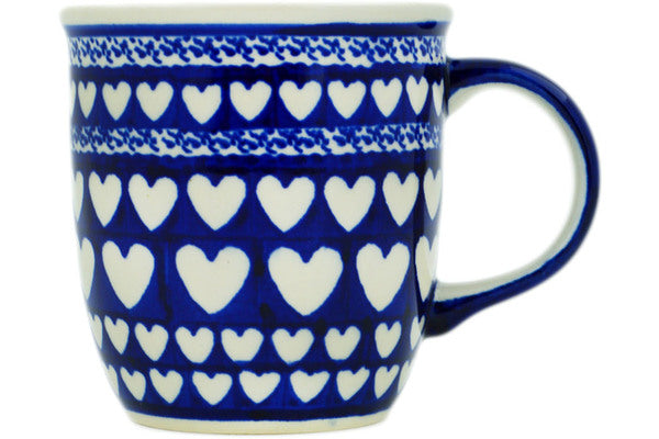 This Heart Of Hearts 12 oz Mug was handmade and hand decorated in Boleslawiec, Poland by skilled artisans according to old traditional methods. This Polish stoneware is microwave, dishwasher, freezer, and oven safe up to 480°F. It does not contain lead or cadmium. It is part of the Heart Of Hearts Collection.