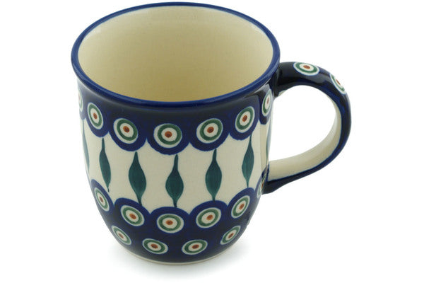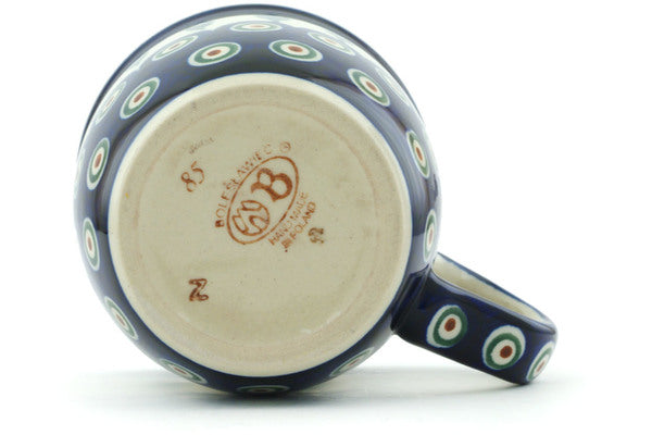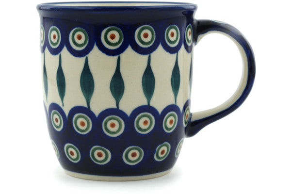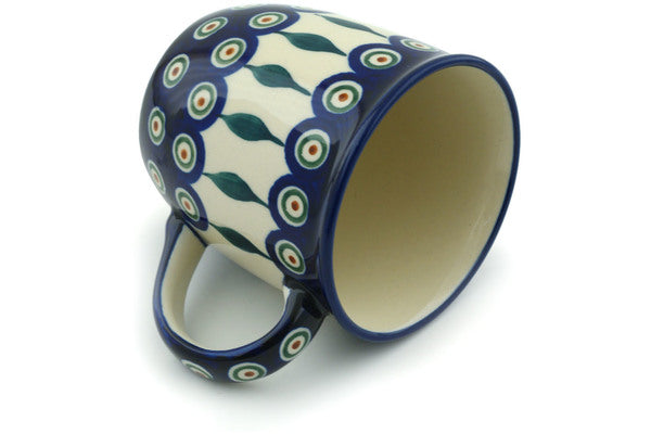 This Peacock Leaves 12 oz Mug was handmade and hand decorated in Boleslawiec, Poland by skilled artisans according to old traditional methods. This Polish stoneware is microwave, dishwasher, freezer, and oven safe up to 480°F. It does not contain lead or cadmium. It is part of the Peacock Leaves Collection.