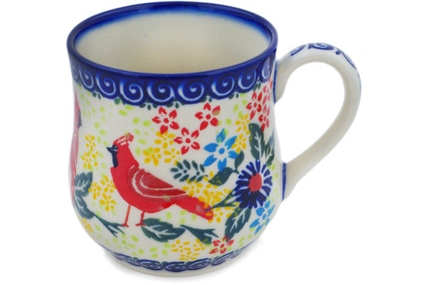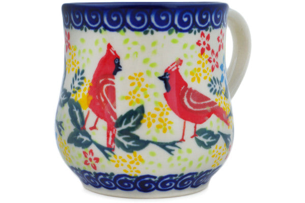 This Lovely Red Birds 13 oz Mug was handmade and hand decorated in Boleslawiec, Poland by skilled artisans according to old traditional methods. This is a Polish pottery Signature Unikat, which means that it has been hand painted with both sponges and brushes and it is signed by the artist who painted it. Unikat pieces are the most intricate works of art. Larger Unikat items take hours of very careful work to finish. This Polish stoneware is microwave, dishwasher, freezer, and oven safe up to 480°F. It does not contain lead or cadmium. It is part of the Lovely Red Birds Collection.