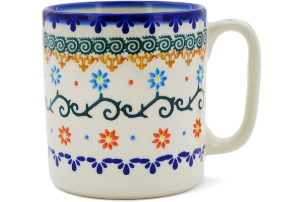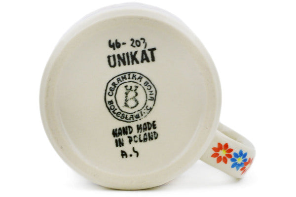 This Sunflower Dance 13 oz Mug was handmade and hand decorated in Boleslawiec, Poland by skilled artisans according to old traditional methods. This Polish stoneware is microwave, dishwasher, freezer, and oven safe up to 480°F. It does not contain lead or cadmium. It is part of the Sunflower Dance Collection.