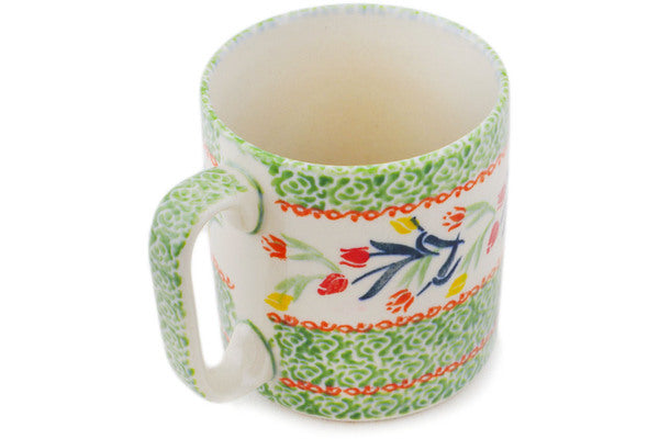 This Tulip Ring 13 oz Mug was handmade and hand decorated in Boleslawiec, Poland by skilled artisans according to old traditional methods. This Polish stoneware is microwave, dishwasher, freezer, and oven safe up to 480°F. It does not contain lead or cadmium. It is part of the Tulip Ring Collection.