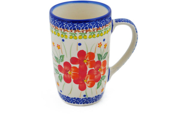 This Vermilion Clusters 14 oz Mug was handmade and hand decorated in Boleslawiec, Poland by skilled artisans according to old traditional methods. This Polish stoneware is microwave, dishwasher, freezer, and oven safe up to 480°F. It does not contain lead or cadmium. It is part of the Vermilion Clusters Collection.