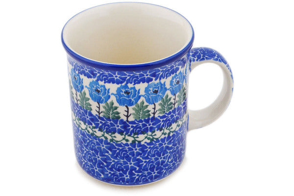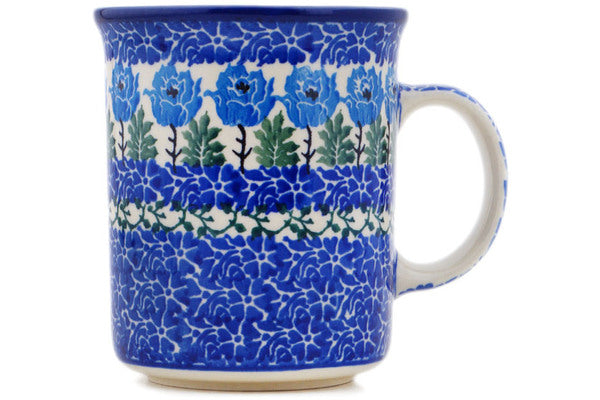 This Blue Rosette Wreath 15 oz Mug was handmade and hand decorated in Boleslawiec, Poland by skilled artisans according to old traditional methods. This Polish stoneware is microwave, dishwasher, freezer, and oven safe up to 480°F. It does not contain lead or cadmium. It is part of the Blue Rosette Wreath Collection.