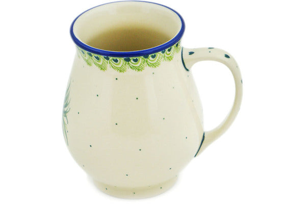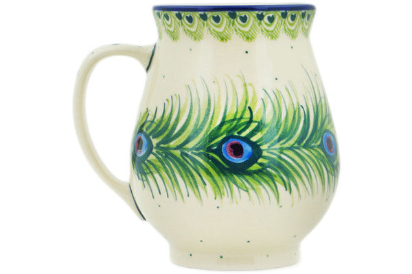 This Majestic Peacock 17 oz Mug was handmade and hand decorated in Boleslawiec, Poland by skilled artisans according to old traditional methods. This Polish stoneware is microwave, dishwasher, freezer, and oven safe up to 480°F. It does not contain lead or cadmium. It is part of the Majestic Peacock Collection.
