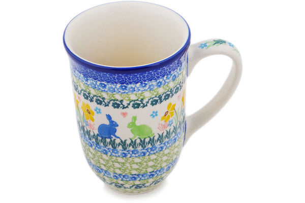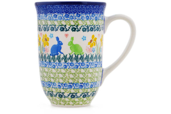 This Hopping In Love 19 oz Mug was handmade and hand decorated in Boleslawiec, Poland by skilled artisans according to old traditional methods. This Polish stoneware is microwave, dishwasher, freezer, and oven safe up to 480°F. It does not contain lead or cadmium. It is part of the Hopping In Love Collection.