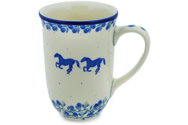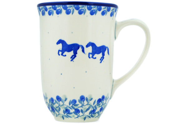 This Horse Gallop 19 oz Mug was handmade and hand decorated in Boleslawiec, Poland by skilled artisans according to old traditional methods. This Polish stoneware is microwave, dishwasher, freezer, and oven safe up to 480°F. It does not contain lead or cadmium. It is part of the Horse Gallop Collection.