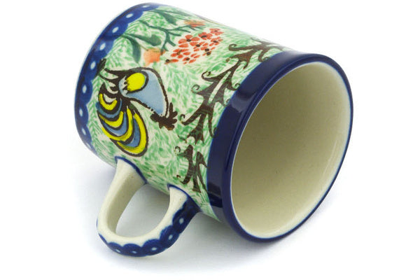 This Rooster Dance 5 oz Mug was handmade and hand decorated in Boleslawiec, Poland by skilled artisans according to old traditional methods. This is a Polish pottery Signature Unikat, which means that it has been hand painted with both sponges and brushes and it is signed by the artist who painted it. Unikat pieces are the most intricate works of art. Larger Unikat items take hours of very careful work to finish. This Polish stoneware is microwave, dishwasher, freezer, and oven safe up to 480°F. It does not contain lead or cadmium. It is part of the Rooster Dance Collection.