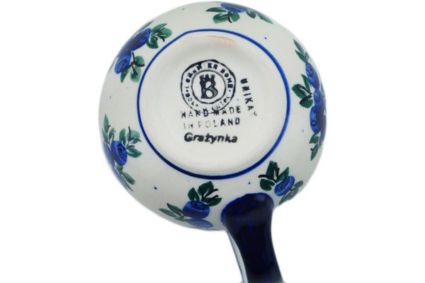 This Blue Berry Special 8 oz Mug was handmade and hand decorated in Boleslawiec, Poland by skilled artisans according to old traditional methods. This is a Polish pottery Signature Unikat, which means that it has been hand painted with both sponges and brushes and it is signed by the artist who painted it. Unikat pieces are the most intricate works of art. Larger Unikat items take hours of very careful work to finish. This Polish stoneware is microwave, dishwasher, freezer, and oven safe up to 480°F. It does not contain lead or cadmium. It is part of the Blue Berry Special Collection.