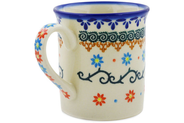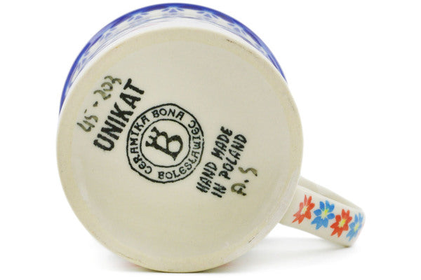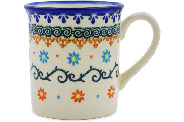 This Sunflower Dance 8 oz Mug was handmade and hand decorated in Boleslawiec, Poland by skilled artisans according to old traditional methods. This Polish stoneware is microwave, dishwasher, freezer, and oven safe up to 480°F. It does not contain lead or cadmium. It is part of the Sunflower Dance Collection.
