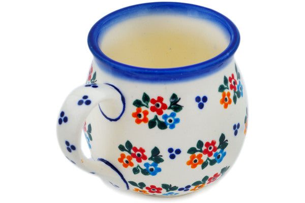 This Sweet Clusters 8 oz Mug was handmade and hand decorated in Boleslawiec, Poland by skilled artisans according to old traditional methods. This is a Polish pottery Signature Unikat, which means that it has been hand painted with both sponges and brushes and it is signed by the artist who painted it. Unikat pieces are the most intricate works of art. Larger Unikat items take hours of very careful work to finish. This Polish stoneware is microwave, dishwasher, freezer, and oven safe up to 480°F. It does not contain lead or cadmium. It is part of the Sweet Clusters Collection.