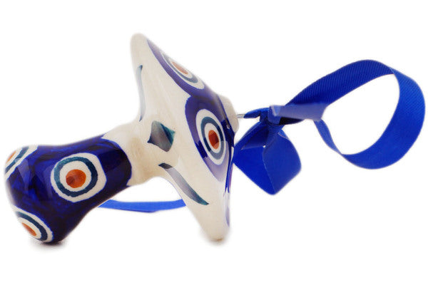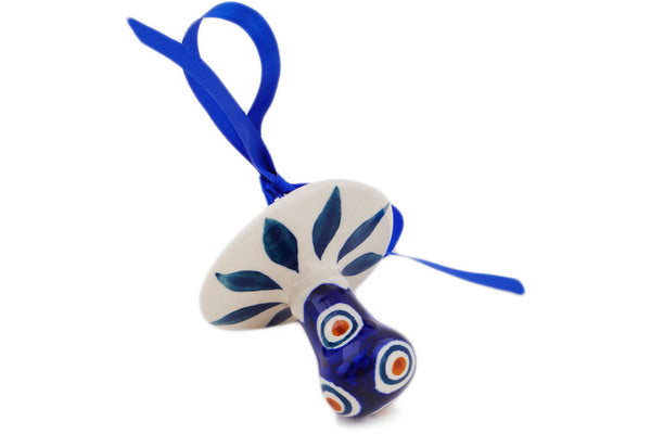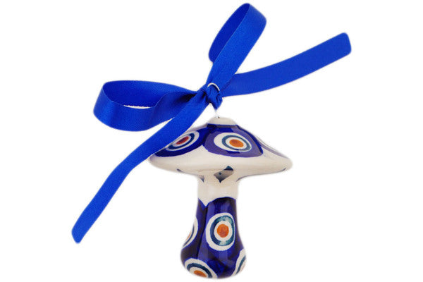 This Peacock Leaves 3" Mushroom Ornament was handmade and hand decorated in Boleslawiec, Poland by skilled artisans according to old traditional methods. This Polish stoneware is microwave, dishwasher, freezer, and oven safe up to 480°F. It does not contain lead or cadmium. It is part of the Peacock Leaves Collection.