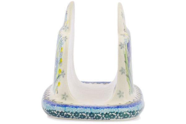 This Iris Field 7" Napkin Holder was handmade and hand decorated in Boleslawiec, Poland by skilled artisans according to old traditional methods. This is a Polish pottery Signature Unikat, which means that it has been hand painted with both sponges and brushes and it is signed by the artist who painted it. Unikat pieces are the most intricate works of art. Larger Unikat items take hours of very careful work to finish. This Polish stoneware is microwave, dishwasher, freezer, and oven safe up to 480°F. It does not contain lead or cadmium. It is part of the Iris Field Collection.