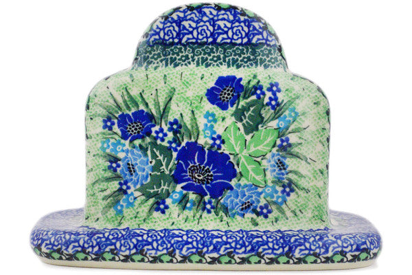 This Moody Blues 7" Napkin Holder was handmade and hand decorated in Boleslawiec, Poland by skilled artisans according to old traditional methods. This is a Polish pottery Signature Unikat, which means that it has been hand painted with both sponges and brushes and it is signed by the artist who painted it. Unikat pieces are the most intricate works of art. Larger Unikat items take hours of very careful work to finish. This Polish stoneware is microwave, dishwasher, freezer, and oven safe up to 480°F. It does not contain lead or cadmium. It is part of the Moody Blues Collection.