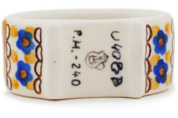 This Marigold Dreams 3" Napkin Ring was handmade and hand decorated in Boleslawiec, Poland by skilled artisans according to old traditional methods. This is a Polish pottery Signature Unikat, which means that it has been hand painted with both sponges and brushes and it is signed by the artist who painted it. Unikat pieces are the most intricate works of art. Larger Unikat items take hours of very careful work to finish. This Polish stoneware is microwave, dishwasher, freezer, and oven safe up to 480°F. It does not contain lead or cadmium. It is part of the Marigold Dreams Collection.