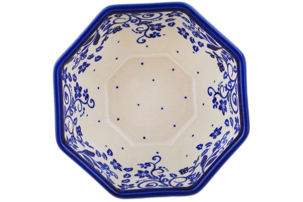 This Blue Vines 5" Octagonal Bowl was handmade and hand decorated in Boleslawiec, Poland by skilled artisans according to old traditional methods. This Polish stoneware is microwave, dishwasher, freezer, and oven safe up to 480°F. It does not contain lead or cadmium. It is part of the Blue Vines Collection.