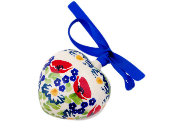 This Wild Poppies 3" Ornament Heart was handmade and hand decorated in Boleslawiec, Poland by skilled artisans according to old traditional methods. This is a Polish pottery Signature Unikat, which means that it has been hand painted with both sponges and brushes and it is signed by the artist who painted it. Unikat pieces are the most intricate works of art. Larger Unikat items take hours of very careful work to finish. This Polish stoneware is microwave, dishwasher, freezer, and oven safe up to 480°F. It does not contain lead or cadmium. It is part of the Wild Poppies Collection.