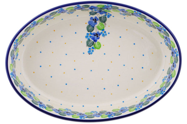 This Waterfall Blooms 11" Oval Baker was handmade and hand decorated in Boleslawiec, Poland by skilled artisans according to old traditional methods. This Polish stoneware is microwave, dishwasher, freezer, and oven safe up to 480°F. It does not contain lead or cadmium. It is part of the Waterfall Blooms Collection.