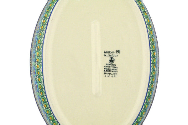 This Mardi Gras 12" Oval Baker was handmade and hand decorated in Boleslawiec, Poland by skilled artisans according to old traditional methods. This is a Polish pottery Signature Unikat, which means that it has been hand painted with both sponges and brushes and it is signed by the artist who painted it. Unikat pieces are the most intricate works of art. Larger Unikat items take hours of very careful work to finish. This Polish stoneware is microwave, dishwasher, freezer, and oven safe up to 480°F. It does not contain lead or cadmium. It is part of the Mardi Gras Collection.