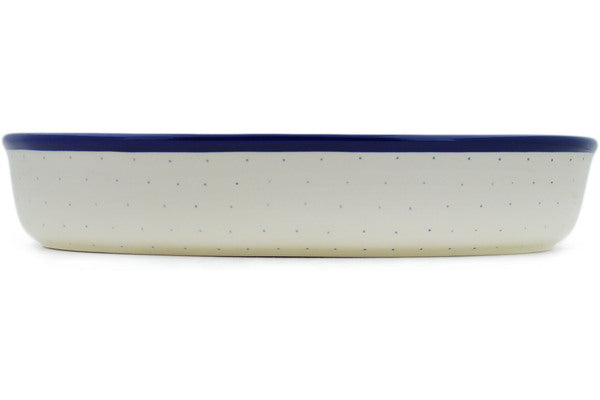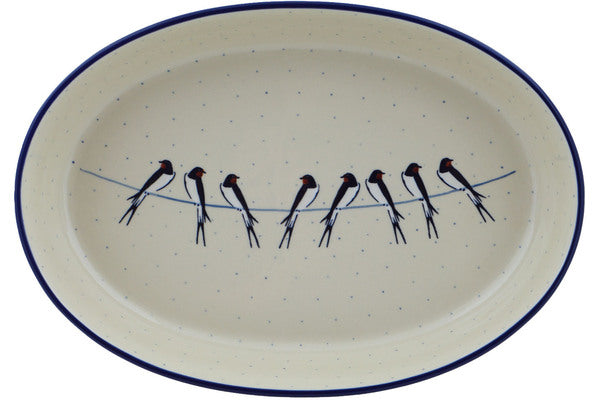 This Waiting 14" Oval Baker was handmade and hand decorated in Boleslawiec, Poland by skilled artisans according to old traditional methods. This is a Polish pottery Signature Unikat, which means that it has been hand painted with both sponges and brushes and it is signed by the artist who painted it. Unikat pieces are the most intricate works of art. Larger Unikat items take hours of very careful work to finish. This Polish stoneware is microwave, dishwasher, freezer, and oven safe up to 480°F. It does not contain lead or cadmium. It is part of the Waiting Collection.