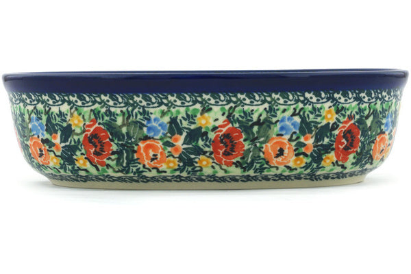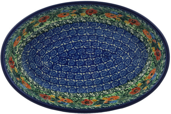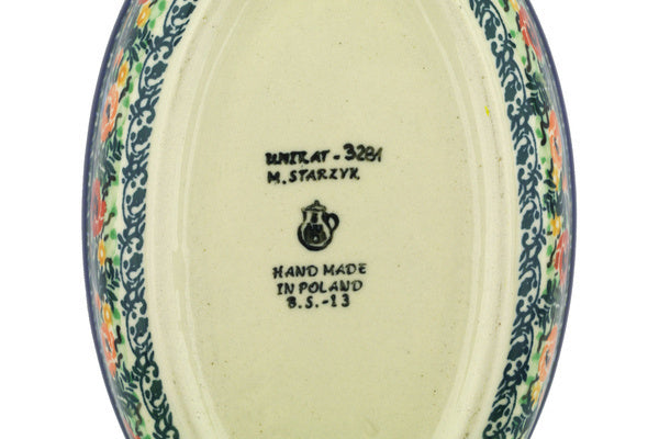 This Blue Daisy Bouquet 8" Oval Baker was handmade and hand decorated in Boleslawiec, Poland by skilled artisans according to old traditional methods. This is a Polish pottery Signature Unikat, which means that it has been hand painted with both sponges and brushes and it is signed by the artist who painted it. Unikat pieces are the most intricate works of art. Larger Unikat items take hours of very careful work to finish. This Polish stoneware is microwave, dishwasher, freezer, and oven safe up to 480°F. It does not contain lead or cadmium. It is part of the Blue Daisy Bouquet Collection.