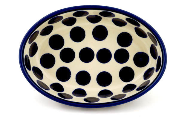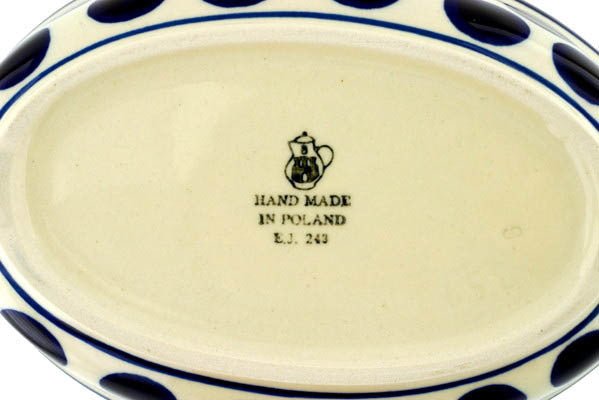 This Bold Blue Dots 8" Oval Baker was handmade and hand decorated in Boleslawiec, Poland by skilled artisans according to old traditional methods. This Polish stoneware is microwave, dishwasher, freezer, and oven safe up to 480°F. It does not contain lead or cadmium. It is part of the Bold Blue Dots Collection.