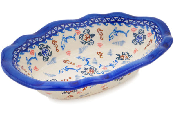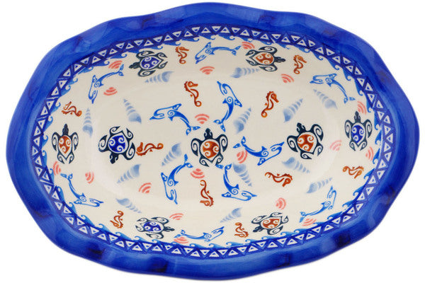 This Hawaiian Sea Turtle - Honu 11" Oval Bowl was handmade and hand decorated in Boleslawiec, Poland by skilled artisans according to old traditional methods. This Polish stoneware is microwave, dishwasher, freezer, and oven safe up to 480°F. It does not contain lead or cadmium. It is part of the Hawaiian Sea Turtle - Honu Collection.