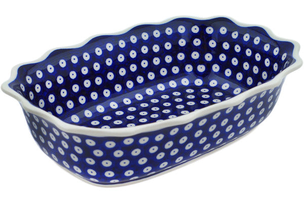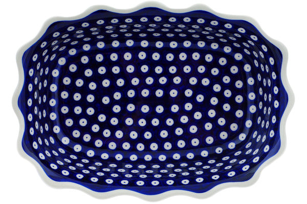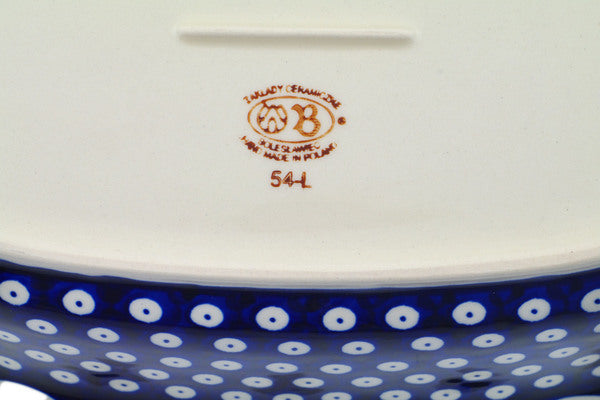 This Blue Eyes 12" Oval Bowl was handmade and hand decorated in Boleslawiec, Poland by skilled artisans according to old traditional methods. This Polish stoneware is microwave, dishwasher, freezer, and oven safe up to 480°F. It does not contain lead or cadmium. It is part of the Blue Eyes Collection.