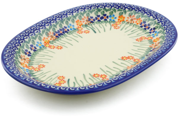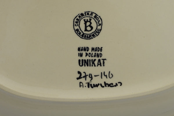 This Blissful Daisy 11" Oval Platter was handmade and hand decorated in Boleslawiec, Poland by skilled artisans according to old traditional methods. This Polish stoneware is microwave, dishwasher, freezer, and oven safe up to 480°F. It does not contain lead or cadmium. It is part of the Blissful Daisy Collection.