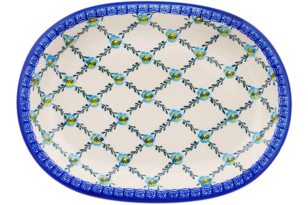 This Garden Games 11" Oval Platter was handmade and hand decorated in Boleslawiec, Poland by skilled artisans according to old traditional methods. This Polish stoneware is microwave, dishwasher, freezer, and oven safe up to 480°F. It does not contain lead or cadmium. It is part of the Garden Games Collection.