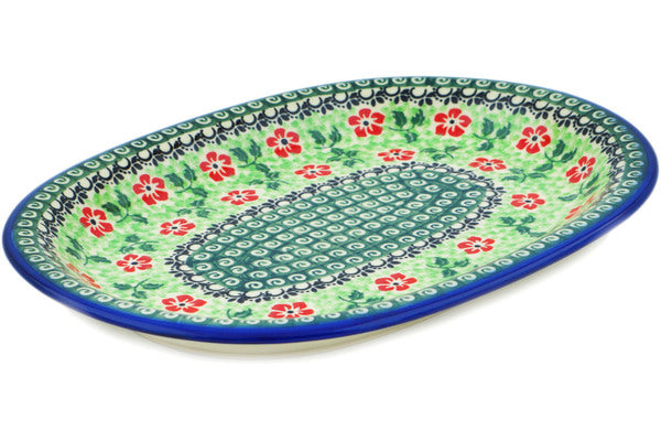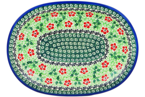 This Poppies Charm 11" Oval Platter was handmade and hand decorated in Boleslawiec, Poland by skilled artisans according to old traditional methods. This is a Polish pottery Signature Unikat, which means that it has been hand painted with both sponges and brushes and it is signed by the artist who painted it. Unikat pieces are the most intricate works of art. Larger Unikat items take hours of very careful work to finish. This Polish stoneware is microwave, dishwasher, freezer, and oven safe up to 480°F. It does not contain lead or cadmium. It is part of the Poppies Charm Collection.