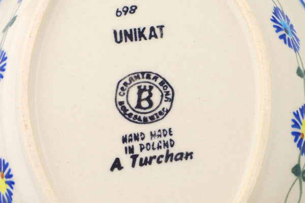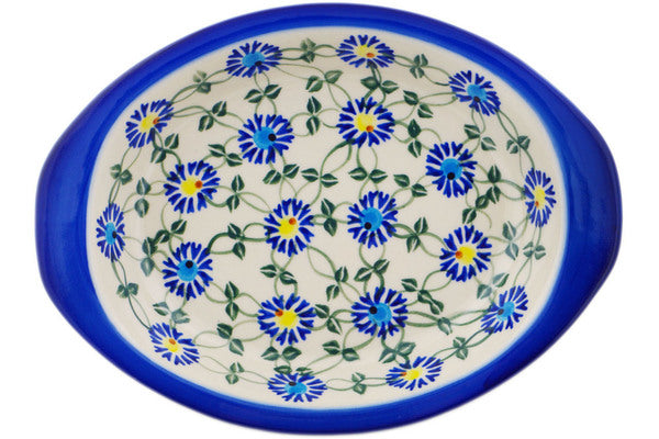 This Blue Thistle Beauty 9" Oval Platter was handmade and hand decorated in Boleslawiec, Poland by skilled artisans according to old traditional methods. This Polish stoneware is microwave, dishwasher, freezer, and oven safe up to 480°F. It does not contain lead or cadmium. It is part of the Blue Thistle Beauty Collection.