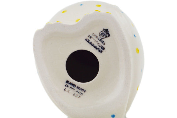This Colorful Dizziness 5" Owl Figurine was handmade and hand decorated in Boleslawiec, Poland by skilled artisans according to old traditional methods. This Polish stoneware is microwave, dishwasher, freezer, and oven safe up to 480°F. It does not contain lead or cadmium. It is part of the Colorful Dizziness Collection.