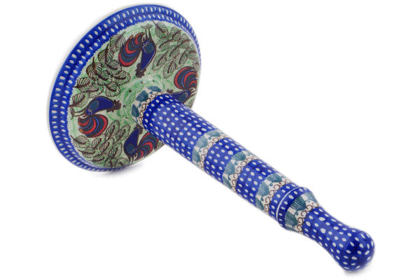 This Rooster Row 13" Paper Towel Stand was handmade and hand decorated in Boleslawiec, Poland by skilled artisans according to old traditional methods. This is a Polish pottery Signature Unikat, which means that it has been hand painted with both sponges and brushes and it is signed by the artist who painted it. Unikat pieces are the most intricate works of art. Larger Unikat items take hours of very careful work to finish. This Polish stoneware is microwave, dishwasher, freezer, and oven safe up to 480°F. It does not contain lead or cadmium. It is part of the Rooster Row Collection.