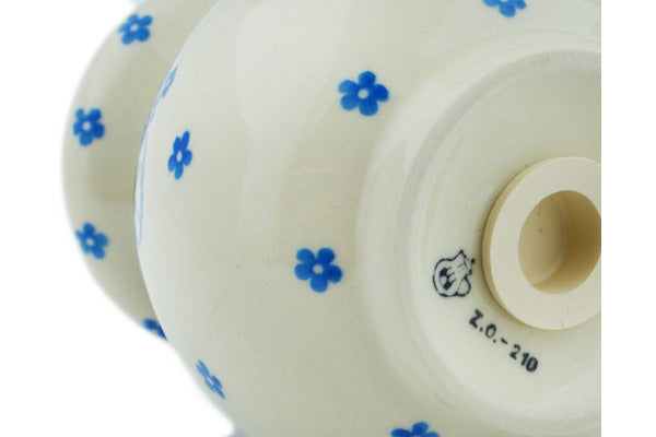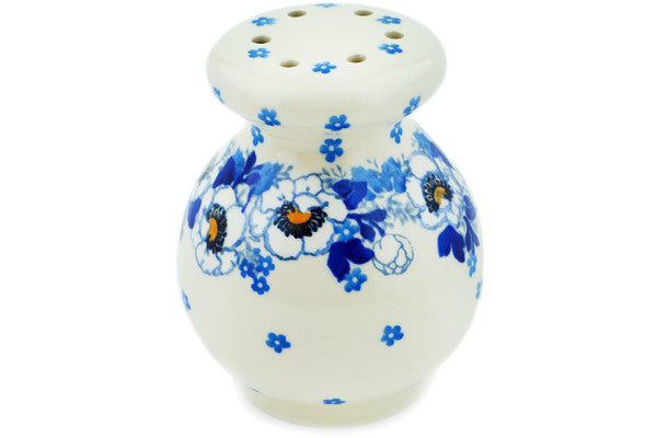This Blue Spring 4" Parmesan Shaker was handmade and hand decorated in Boleslawiec, Poland by skilled artisans according to old traditional methods. This Polish stoneware is microwave, dishwasher, freezer, and oven safe up to 480°F. It does not contain lead or cadmium. It is part of the Blue Spring Collection.