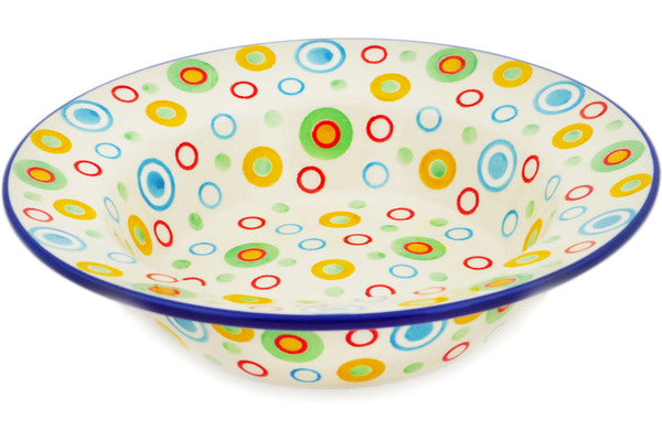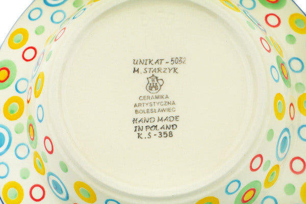 This Retro Olives 8" Pasta Bowl was handmade and hand decorated in Boleslawiec, Poland by skilled artisans according to old traditional methods. This is a Polish pottery Signature Unikat, which means that it has been hand painted with both sponges and brushes and it is signed by the artist who painted it. Unikat pieces are the most intricate works of art. Larger Unikat items take hours of very careful work to finish. This Polish stoneware is microwave, dishwasher, freezer, and oven safe up to 480°F. It does not contain lead or cadmium. It is part of the Retro Olives Collection.