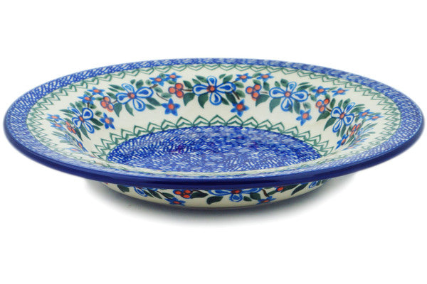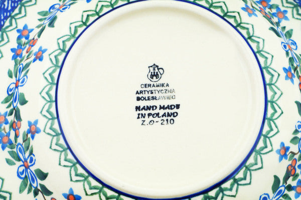This Azure Blooms 9" Pasta Bowl was handmade and hand decorated in Boleslawiec, Poland by skilled artisans according to old traditional methods. This Polish stoneware is microwave, dishwasher, freezer, and oven safe up to 480°F. It does not contain lead or cadmium. It is part of the Azure Blooms Collection.