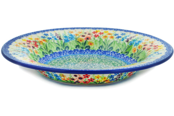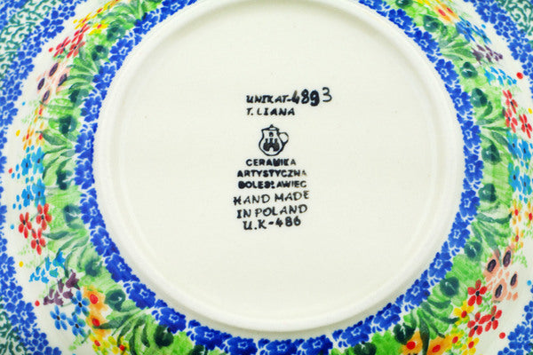 This Colors Of The Wind 9" Pasta Bowl was handmade and hand decorated in Boleslawiec, Poland by skilled artisans according to old traditional methods. This is a Polish pottery Signature Unikat, which means that it has been hand painted with both sponges and brushes and it is signed by the artist who painted it. Unikat pieces are the most intricate works of art. Larger Unikat items take hours of very careful work to finish. This Polish stoneware is microwave, dishwasher, freezer, and oven safe up to 480°F. It does not contain lead or cadmium. It is part of the Colors Of The Wind Collection.