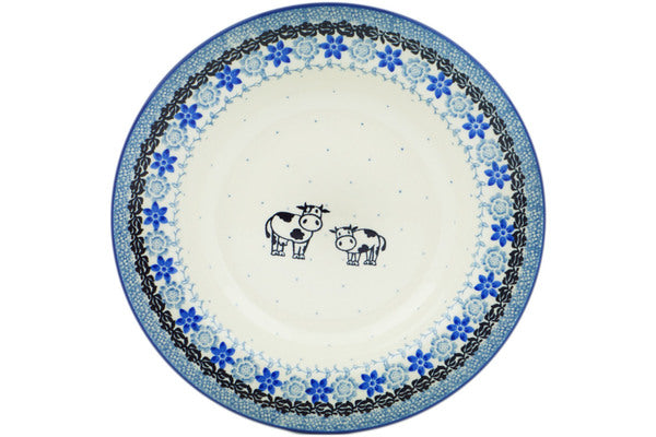This Happy Cows 9" Pasta Bowl was handmade and hand decorated in Boleslawiec, Poland by skilled artisans according to old traditional methods. This Polish stoneware is microwave, dishwasher, freezer, and oven safe up to 480°F. It does not contain lead or cadmium. It is part of the Happy Cows Collection.