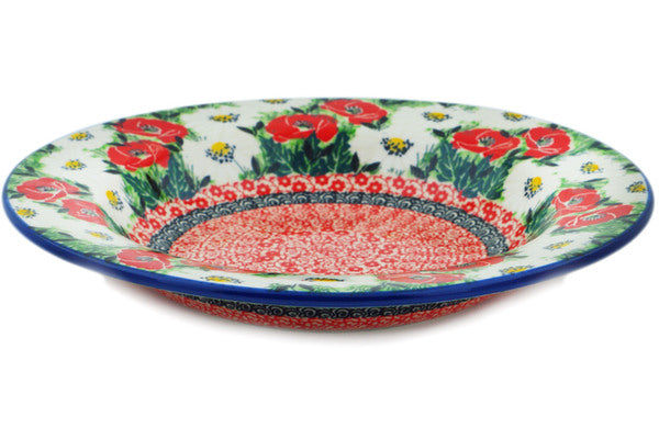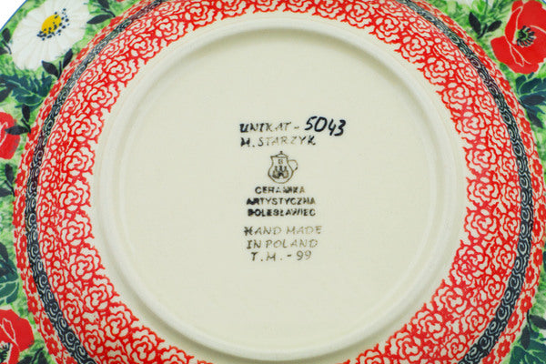 This Polish Summer 9" Pasta Bowl was handmade and hand decorated in Boleslawiec, Poland by skilled artisans according to old traditional methods. This is a Polish pottery Signature Unikat, which means that it has been hand painted with both sponges and brushes and it is signed by the artist who painted it. Unikat pieces are the most intricate works of art. Larger Unikat items take hours of very careful work to finish. This Polish stoneware is microwave, dishwasher, freezer, and oven safe up to 480°F. It does not contain lead or cadmium. It is part of the Polish Summer Collection.