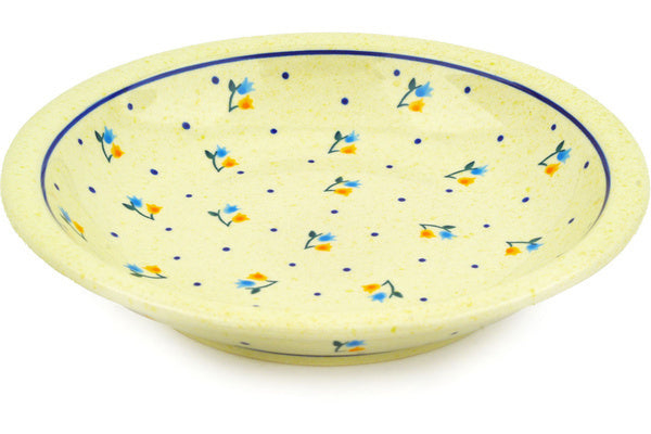 This Polka Dot Tulips 9" Pasta Bowl was handmade and hand decorated in Boleslawiec, Poland by skilled artisans according to old traditional methods. This Polish stoneware is microwave, dishwasher, freezer, and oven safe up to 480°F. It does not contain lead or cadmium. It is part of the Polka Dot Tulips Collection.