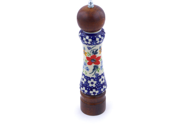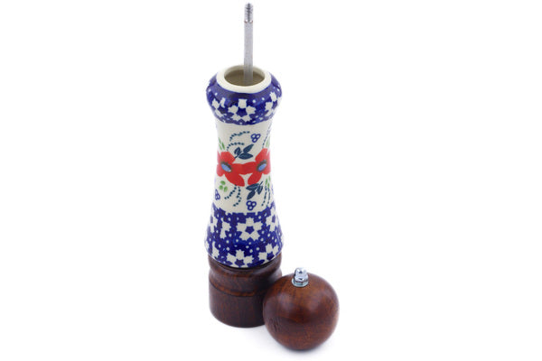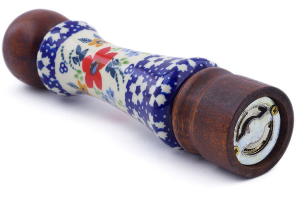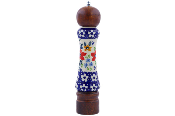 This Summer Bouquet 8" Pepper Grinder was handmade and hand decorated in Boleslawiec, Poland by skilled artisans according to old traditional methods. This is a Polish pottery Signature Unikat, which means that it has been hand painted with both sponges and brushes and it is signed by the artist who painted it. Unikat pieces are the most intricate works of art. Larger Unikat items take hours of very careful work to finish. This Polish stoneware is microwave, dishwasher, freezer, and oven safe up to 480°F. It does not contain lead or cadmium. It is part of the Summer Bouquet Collection.