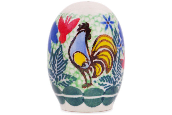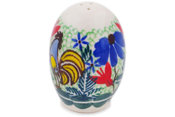 This Spring Rooster 2" Pepper Shaker was handmade and hand decorated in Boleslawiec, Poland by skilled artisans according to old traditional methods. This is a Polish pottery Signature Unikat, which means that it has been hand painted with both sponges and brushes and it is signed by the artist who painted it. Unikat pieces are the most intricate works of art. Larger Unikat items take hours of very careful work to finish. This Polish stoneware is microwave, dishwasher, freezer, and oven safe up to 480°F. It does not contain lead or cadmium. It is part of the Spring Rooster Collection.