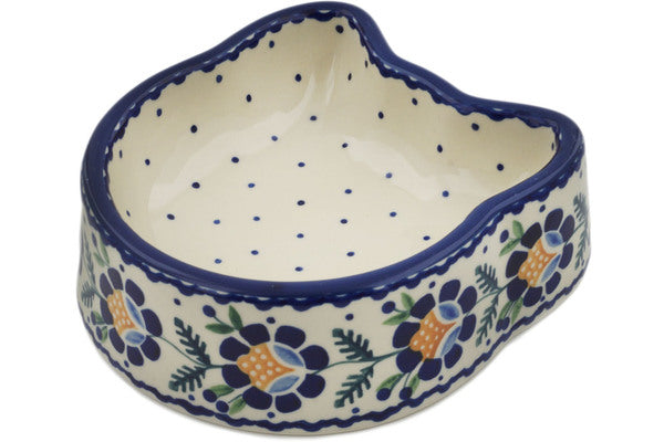 This Orange And Blue Flower 7" Pet Bowl was handmade and hand decorated in Boleslawiec, Poland by skilled artisans according to old traditional methods. This Polish stoneware is microwave, dishwasher, freezer, and oven safe up to 480°F. It does not contain lead or cadmium. It is part of the Orange And Blue Flower Collection.